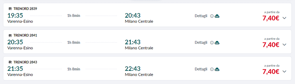Sadly, the day have passed and it is not time to head back to Milano. You will have to find a train at the Varenna-Esino station, it is a short walk from the lake. You can again buy the ticket online at Trenitalia’s website. Look for tickets from Varenna-Esino to Milano Centrale. In October 2024 the last train back to Milano is 21:35. Taking you 1 hour and 8 minutes to get back to Milano and costing 7,40€ for an adult ticket.